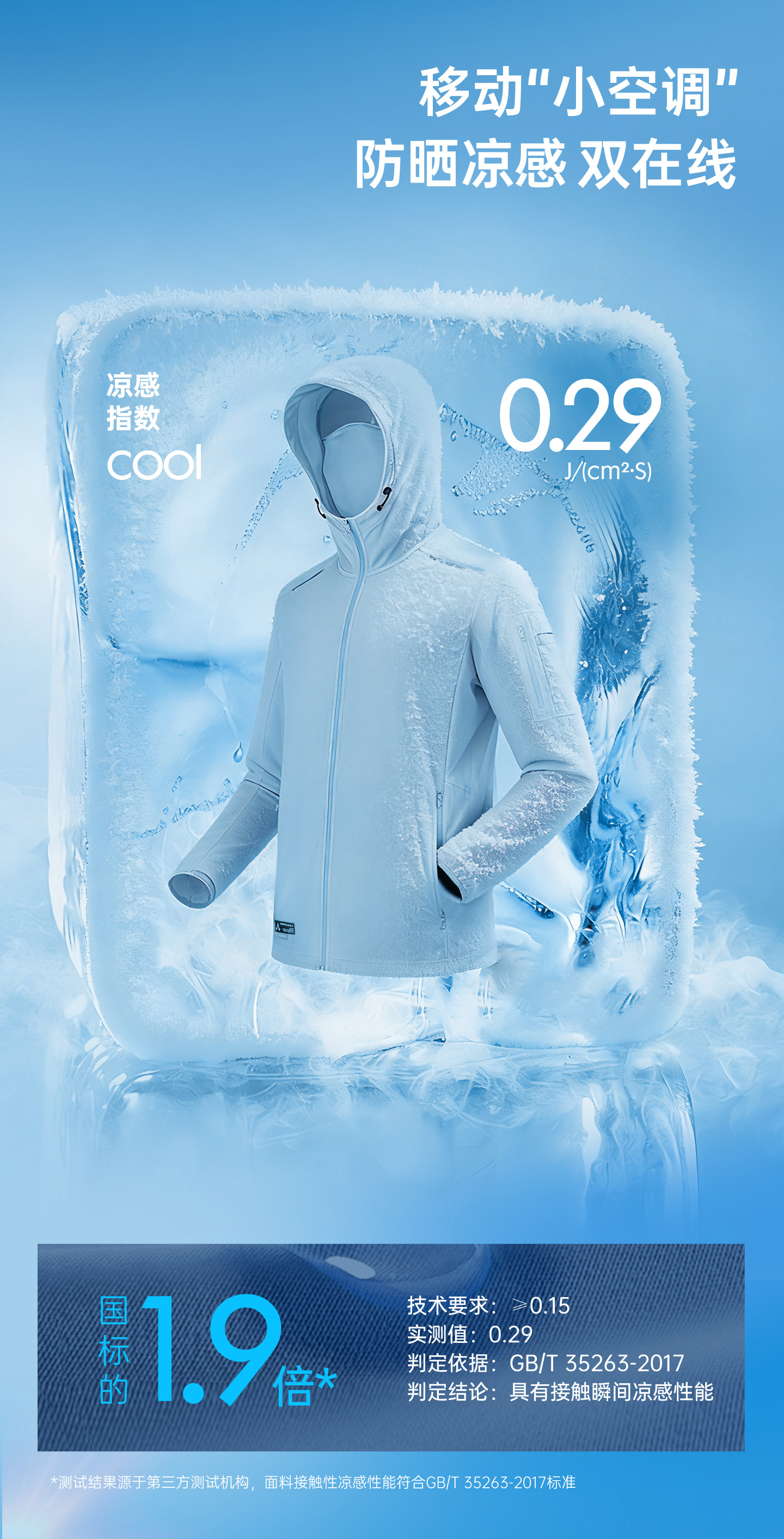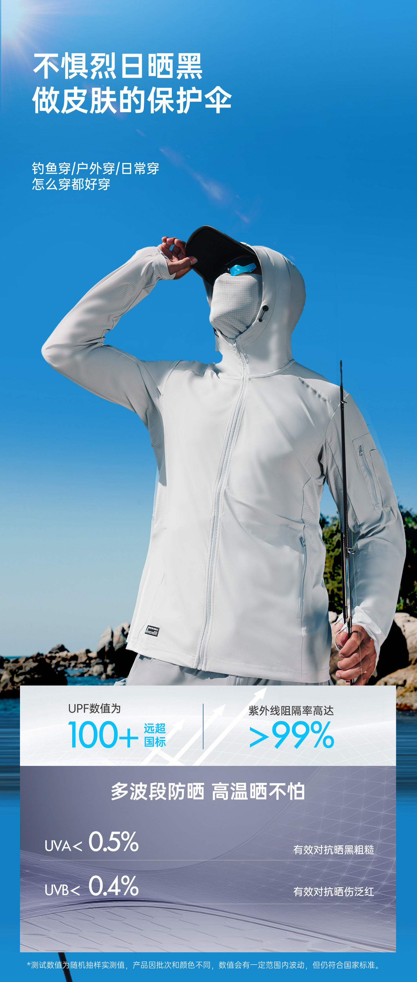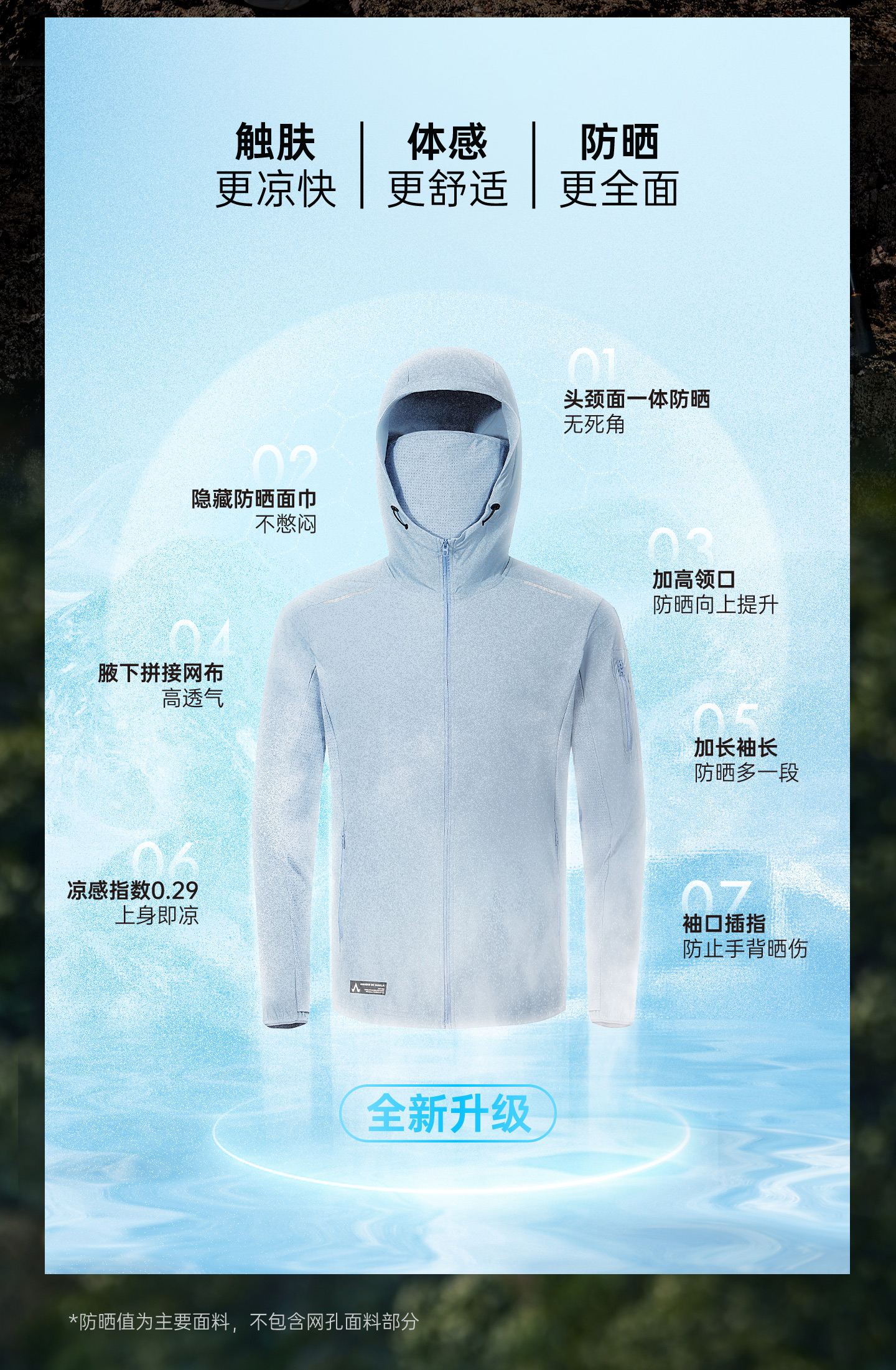 ·凉感防晒面料,UPF100+高倍防晒,体感清凉透气
