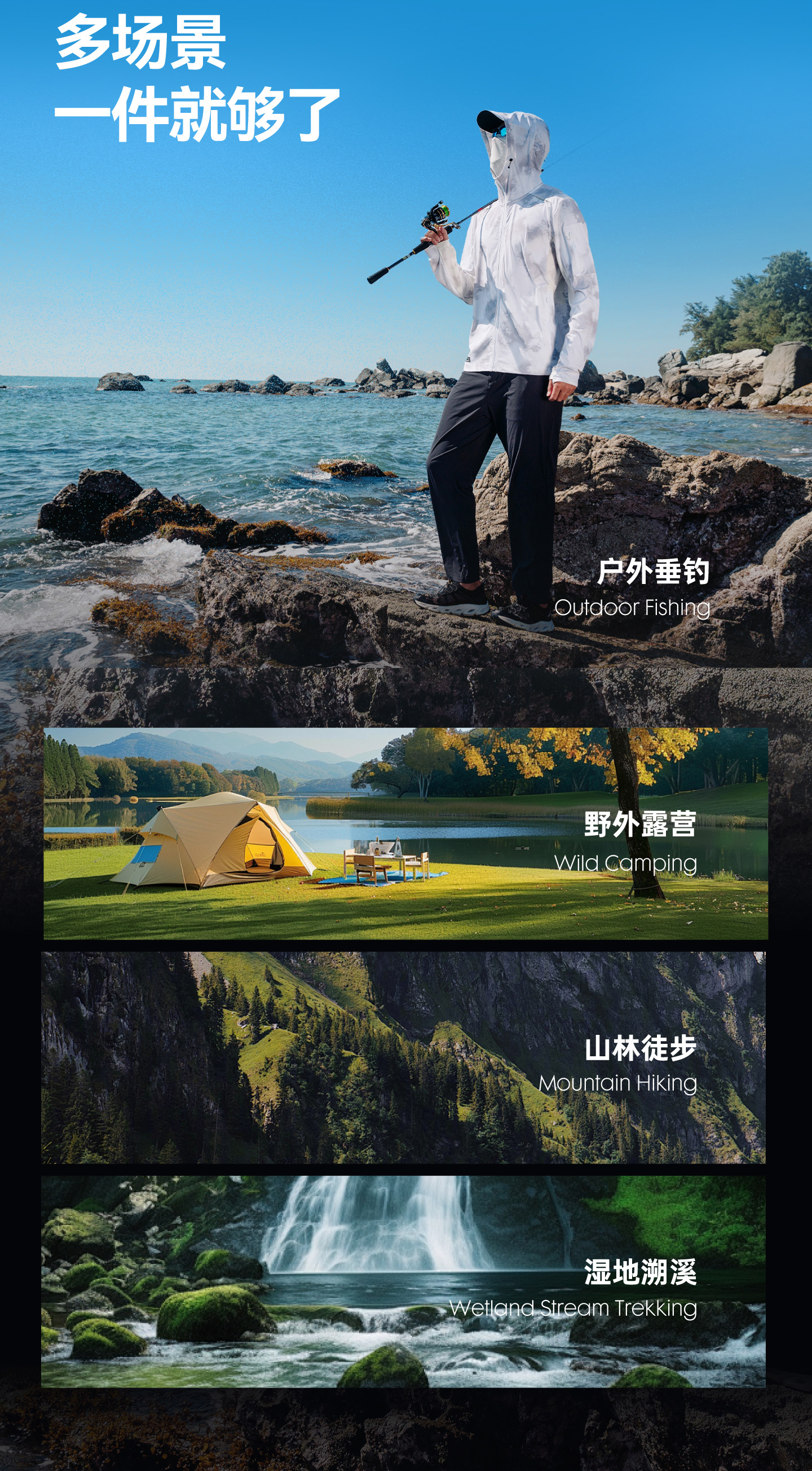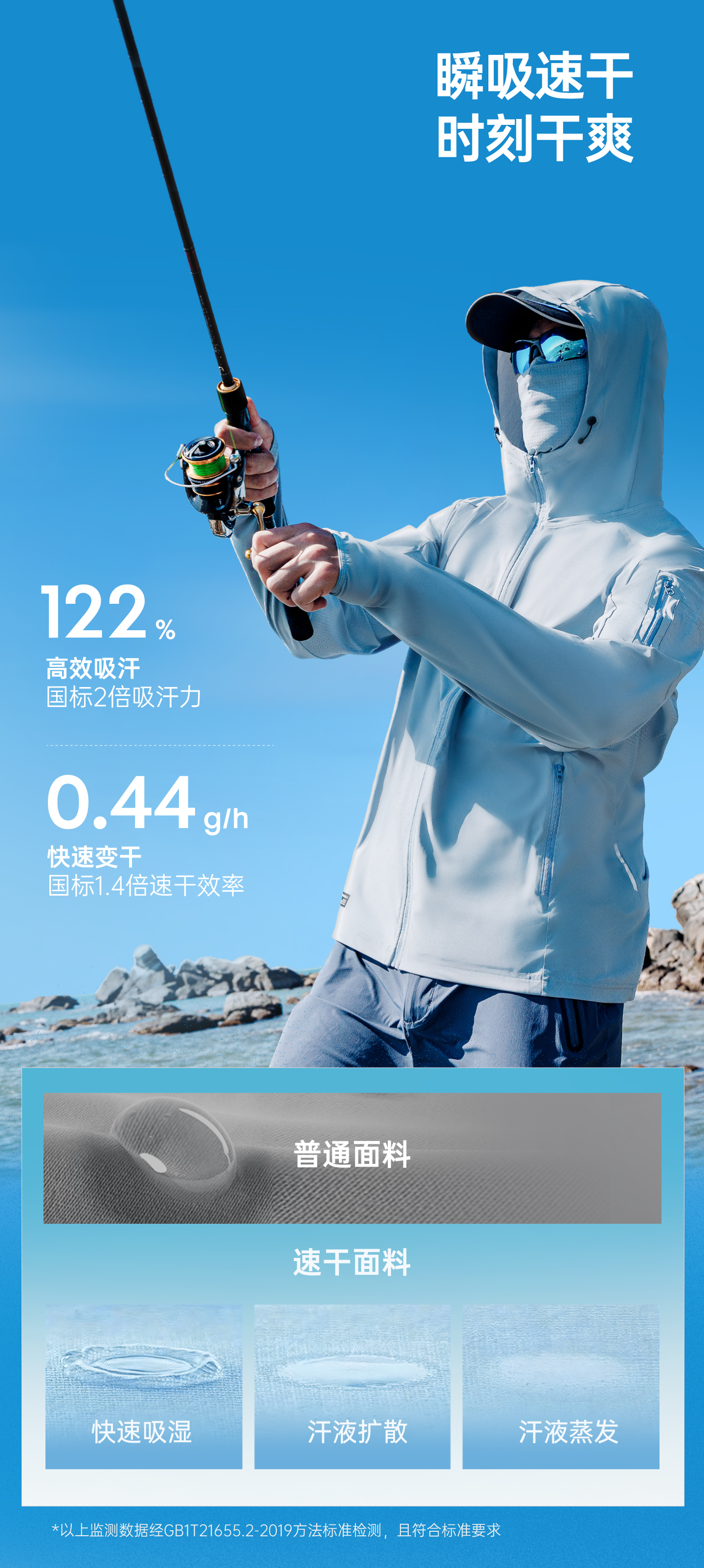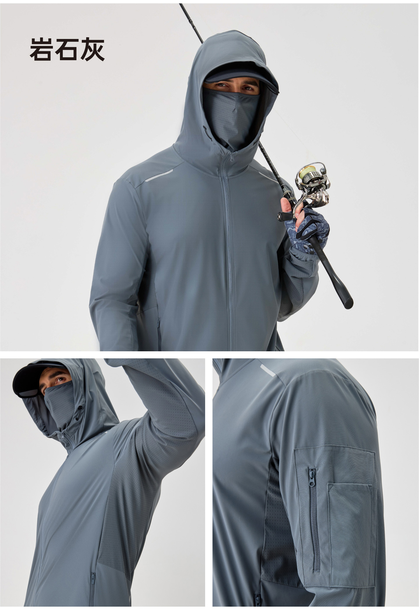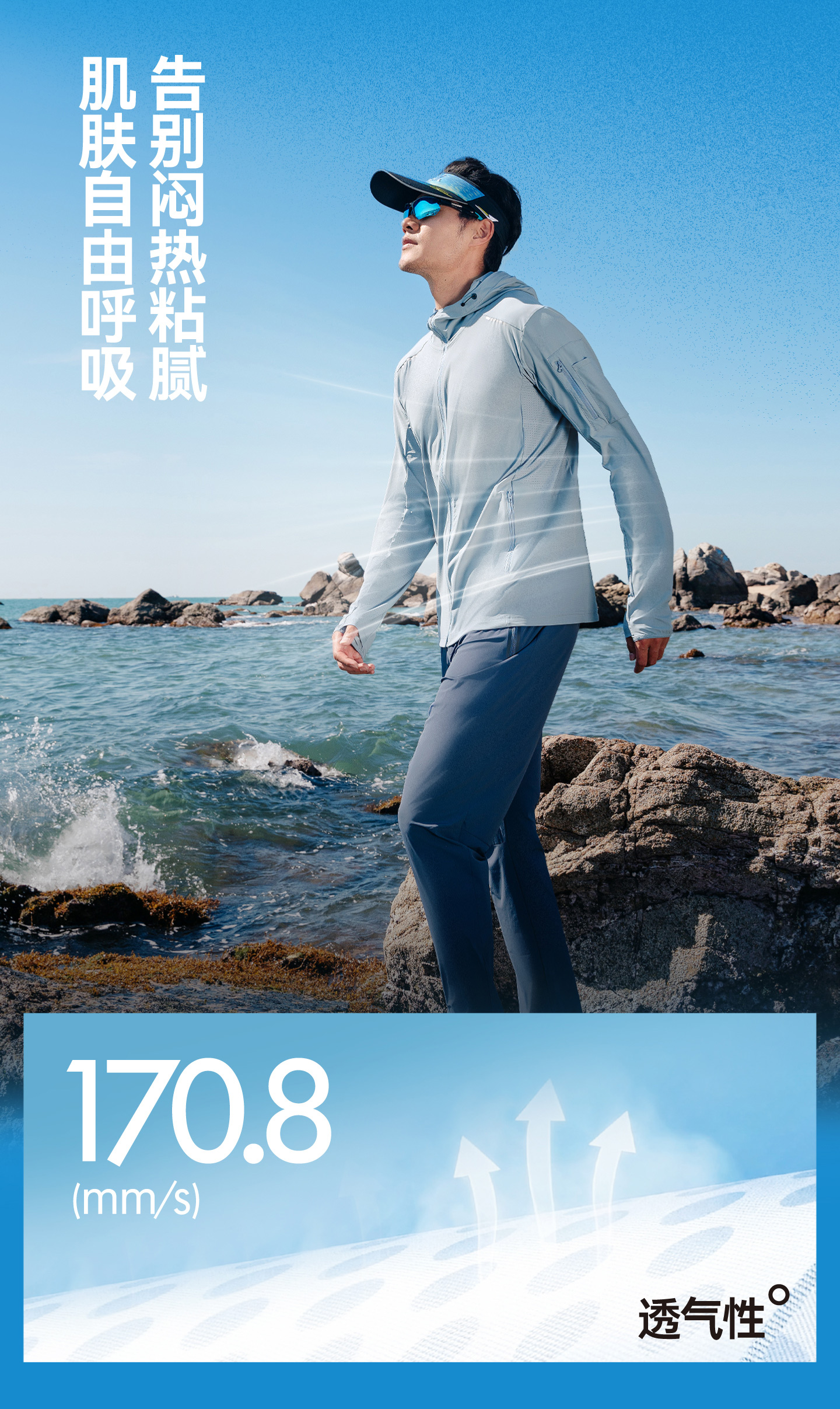 ·凉感防晒面料,UPF100+高倍防晒,体感清凉透气