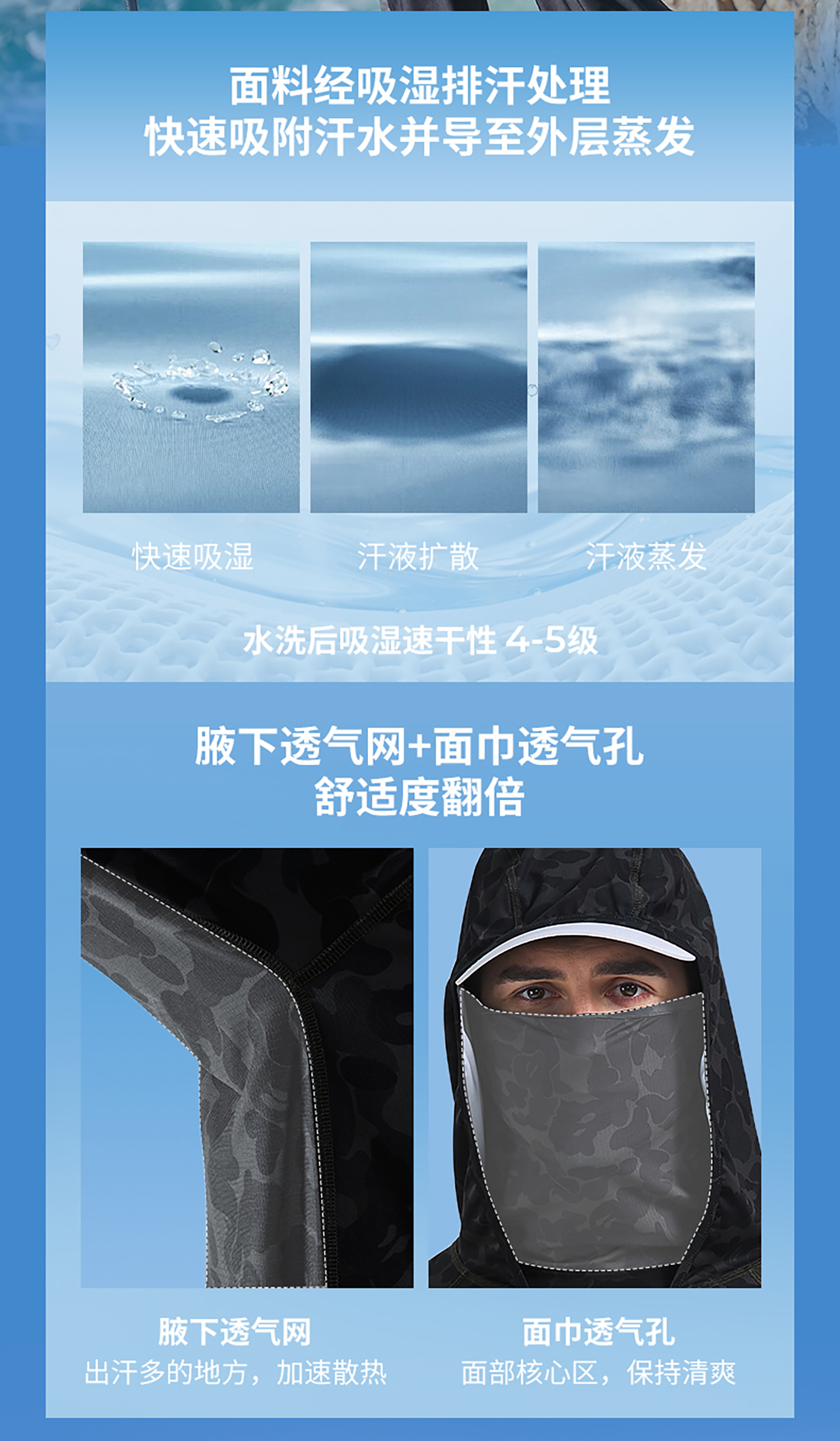 ·面巾、腋下采用网眼布,透气不闷热