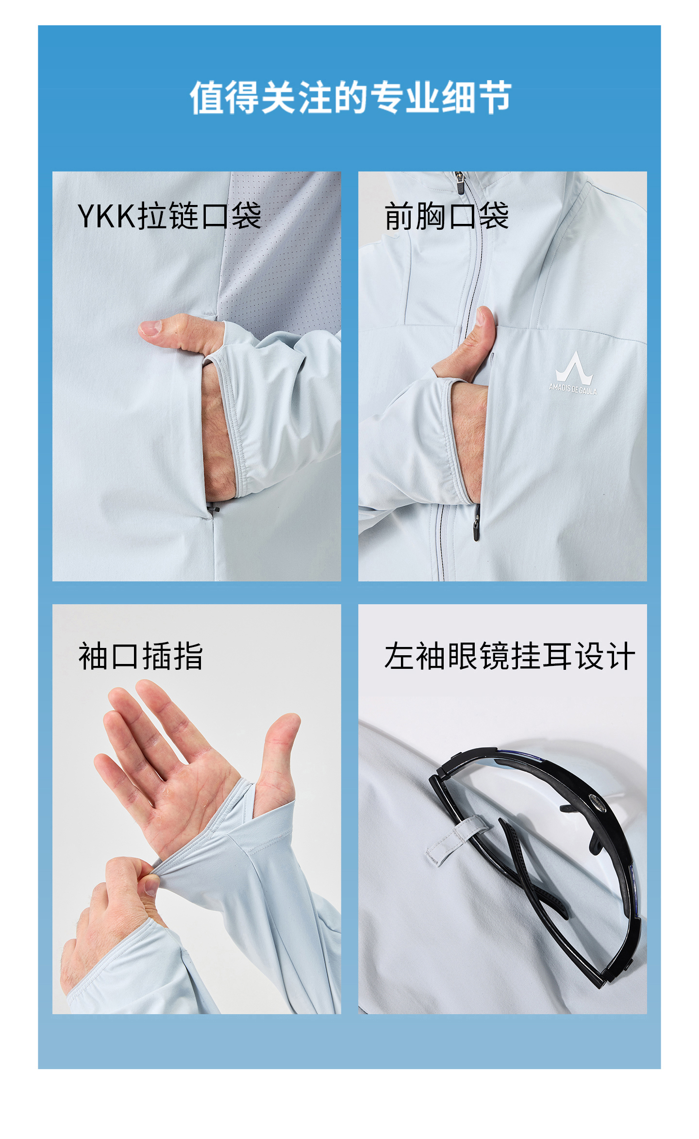 ·加长袖口,防止钓鱼时晒伤手背